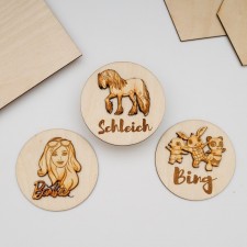 Etykiety wykonane są ze sklejki brzozowej 3 mm.