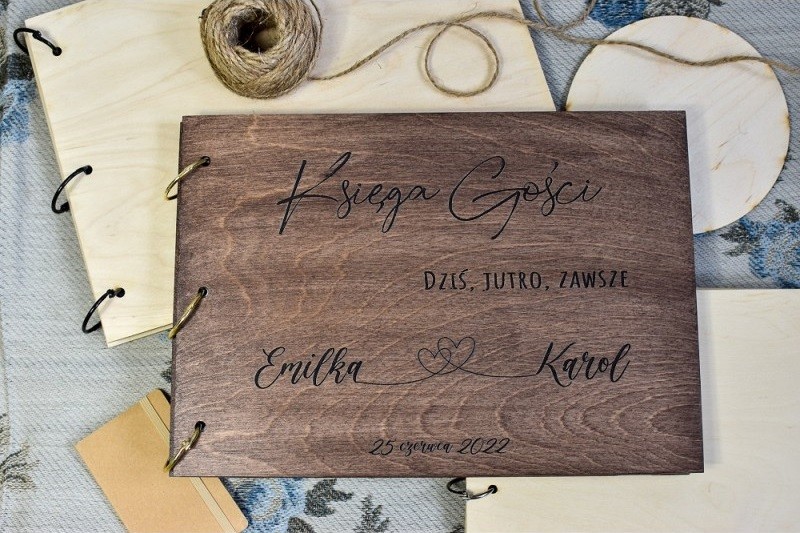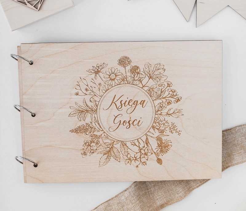 Format A4 oraz grube kartki 220 g zapewniają komfort użytkowania przez całą imprezę. Kartki są sztywne i trwałe, dzięki czemu zdjęcia dobrze się trzymają i całość zachowuje estetyczny wygląd także po wydarzeniu. Okładka z drewna, grawer laserowy i ręczne wykończenie sprawiają, że księga prezentuje się elegancko i pasuje do różnych stylów imprez.