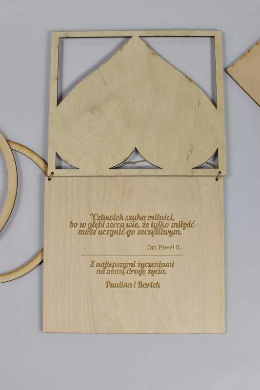 Produkt dekoracyjno-upominkowy wykonany ze sklejki brzozowej.